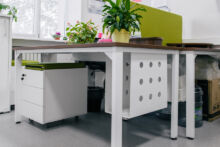 Мебель на металлокаркасе может быть адаптирована под разные размеры и формы помещения, в том числе использоваться для построения бенч-систем, которые сейчас в тренде.
